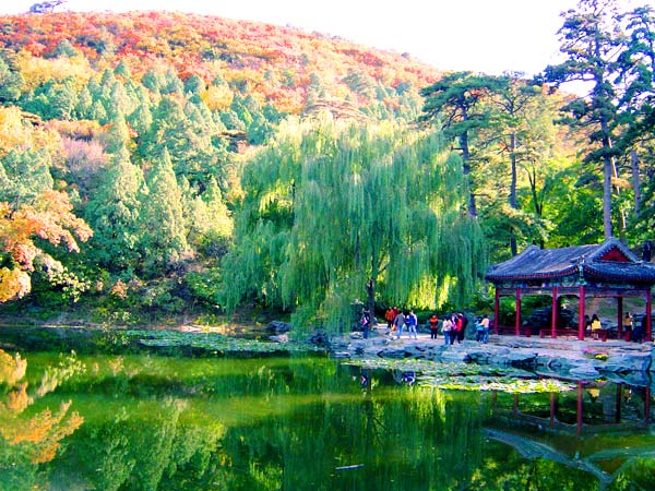 其前身为静宜园时"带水屏山"。重新修葺后,取名静翠湖。1991年,建对瀑亭,为单檐歇山式敞厅,“对瀑”二字仿乾隆御笔。
