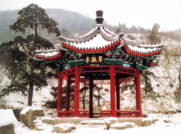 原静宜园二十八景之一,始建于清代乾隆年间,因此地处于古树,绿荫,沟壑,山岩之间,故有"翠微"之称,此处可览四时之胜,特别以入夏为最妙。1991年复建,又移杏树,再现明代春现杏花之景。乾隆皇帝曾在此亲笔御题“翠微亭”诗一首。